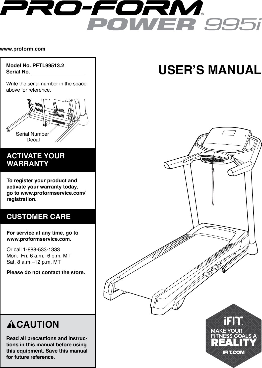Thank you for selecting the revolutionary PROFORM ing this manual please see the front cover of this man- POWER 995 treadmill. The POWER 995I treadmill offers an impressive selection of features designed to make your workouts at home more effec-tive and enjoyable. ProForm Power 995 Treadmill Owners Manual Machine Assembly Instruction and User Guide Note.