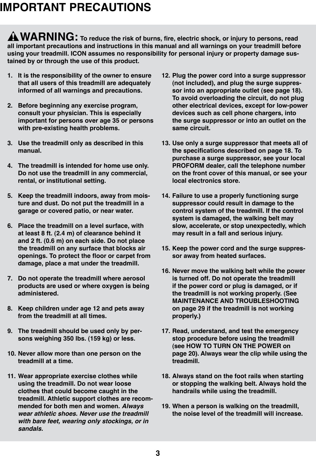 Proform Power 995 I Treadmill English Manual