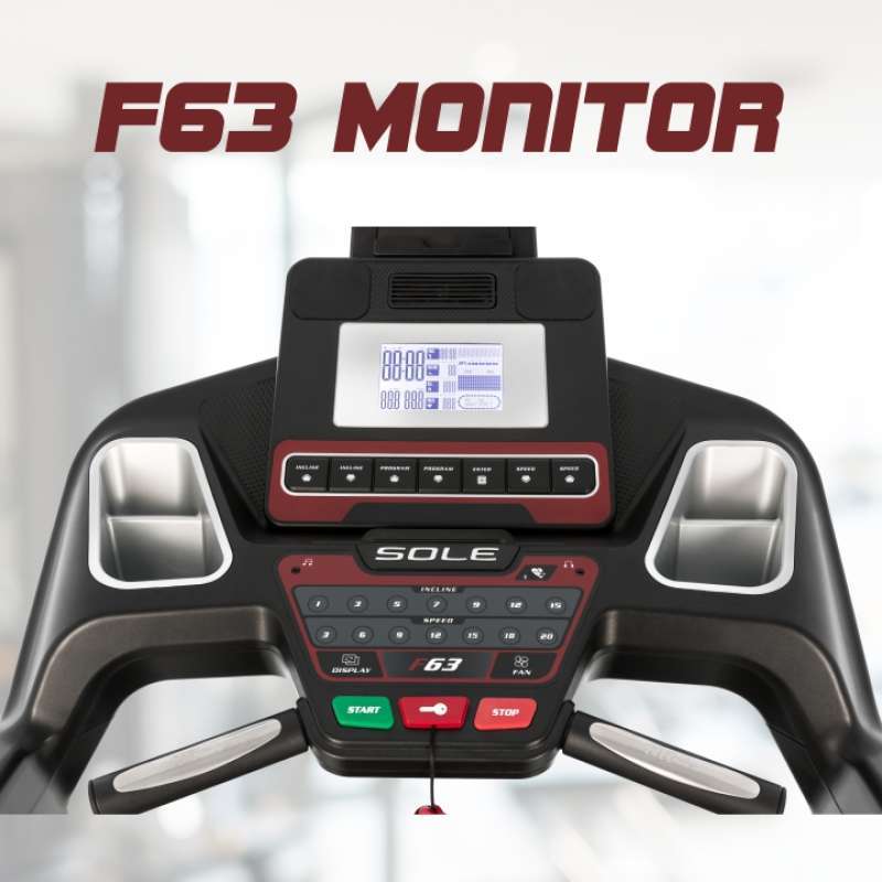 The 2020 Sole F63 is the latest update of the F63 and it is a great addition to Sole Fitness treadmill line. The F63 includes a 65 LCD screen that displays workout stats including calories burned speed time heart rate etc. This entry-level model has a heavy-duty frame with a lifetime warranty and a maximum speed of up to 12 mph.